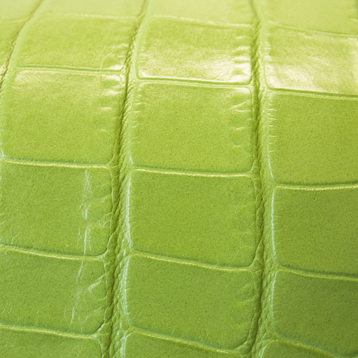 - Glazed Italian crocodile imprint on top-grain cowhide