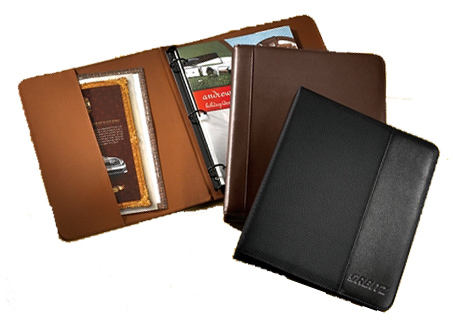 a Napa leather binder with a custom die imprint. The standard $65 die charge, for a die up to nine square inches,